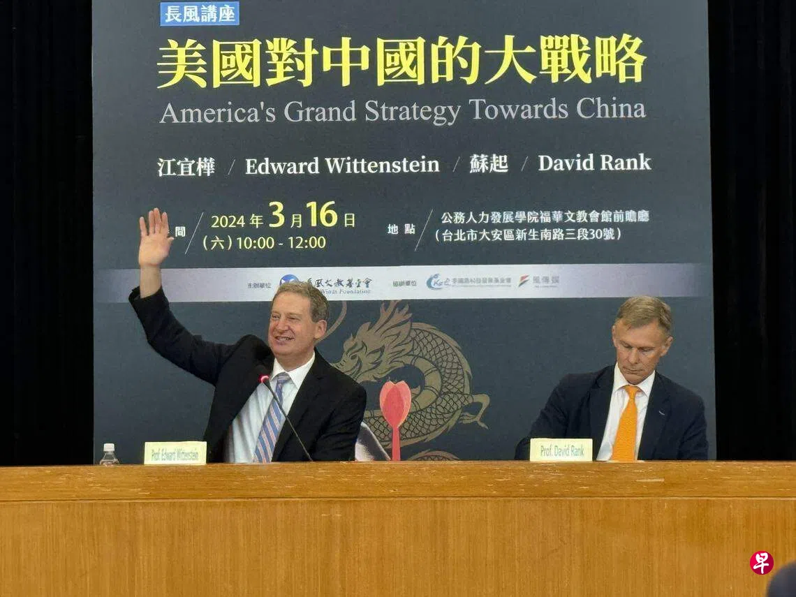 台湾长风基金会星期六举办“美国对中国的大战略”讲座,邀请耶鲁大学杰克逊全球事务学院全球安全研究项目执行主任维滕斯坦(Edward Wittenstein)、资深外交官阮大为,与马英九政府时期的行政院长江宜桦、国安会秘书长苏起共同座谈。