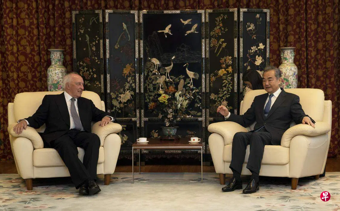 路透社星期四(3月21日)报道,王毅与基廷当天上午在中国驻悉尼领事馆举行会谈,两人在宏观层面就世界地缘战略平衡和影响进行讨论。这是中国外长时隔七年再度访澳。基廷是澳洲执政党工党的成员,于1991年至1996年担任澳总理。