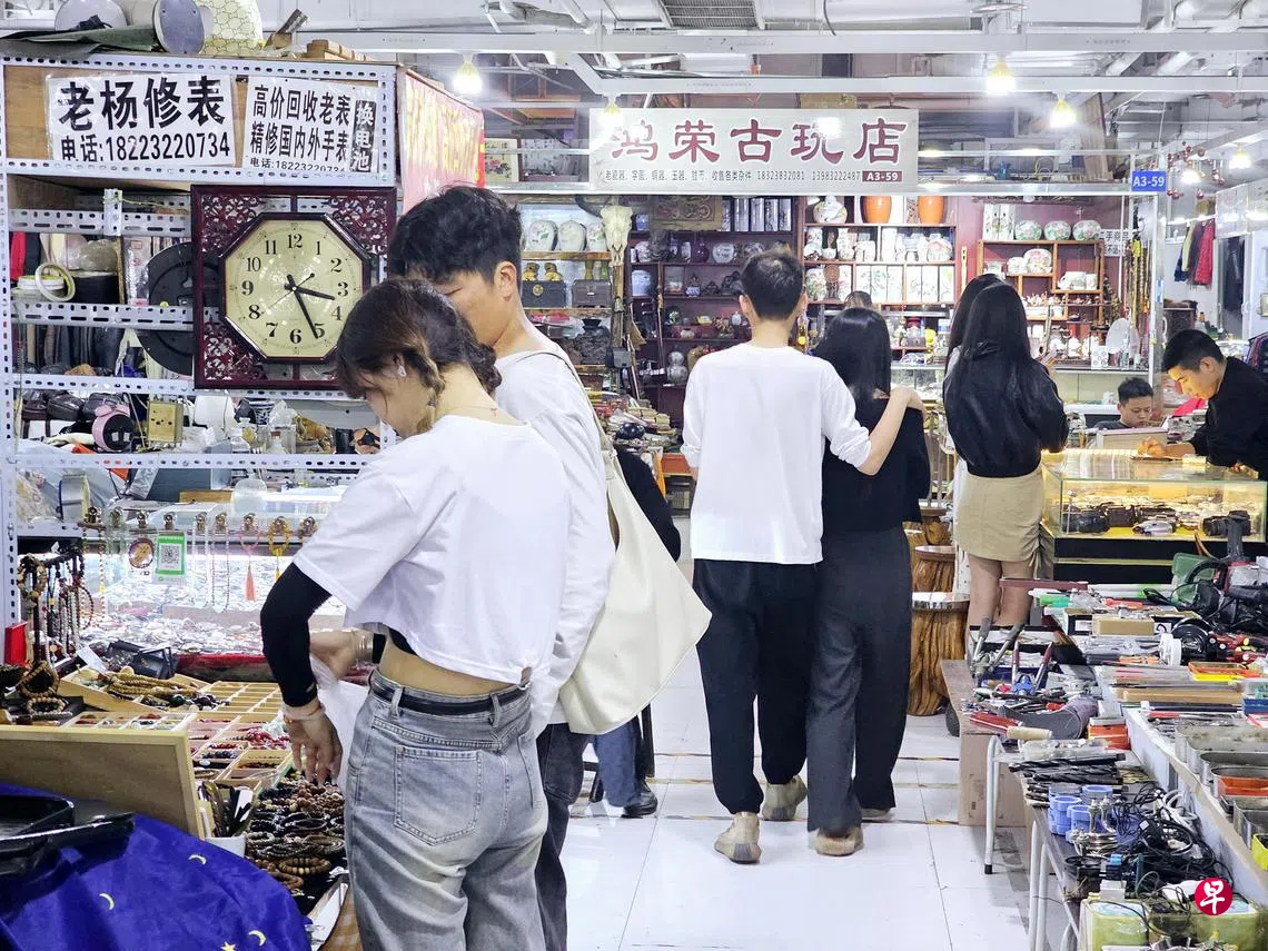 在无一不备的董家溪市场中,一二四楼售卖空调、厨具、五金、家电、家具等,三楼则集聚各种服饰、首饰、摆件、古玩、小百货等充满年代感的老物件,空气中弥漫着厚重的怀旧气息。