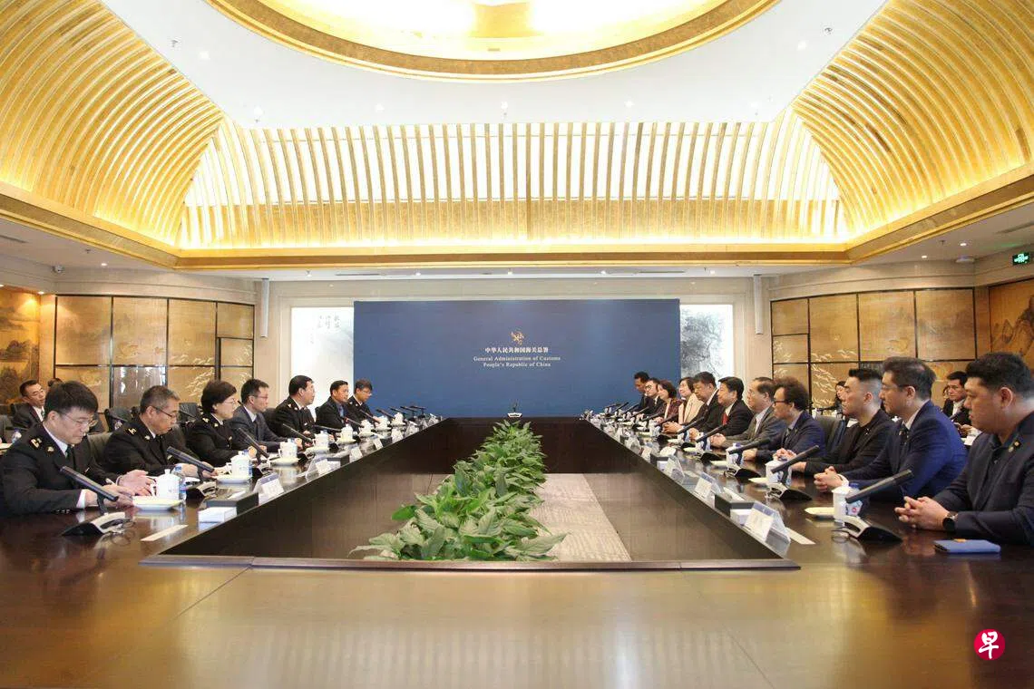 另据中国大陆海关总署网站消息,副署长赵增连星期天在会见傅崐萁一行时表示,愿在坚持“九二共识”、反对“台独”共同政治基础上,与中国国民党及台湾有关方面就恢复文旦柚等台湾农渔产品输入大陆加强沟通,推动台湾业者加强源头管理,采取切实可行的整改措施。海关总署将在科学评估的基础上,依法依规批准符合大陆检疫要求的台湾文旦柚等农渔产品输入大陆。