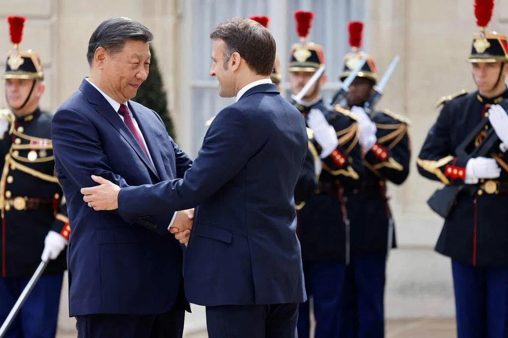 马克龙与习近平星期一上午与欧盟委员会主席冯德莱恩会晤后,下午在爱丽舍宫进行双边会谈。除了两国合作课题外,俄乌战争、中东局势等区域冲突问题也是双方会谈重点。