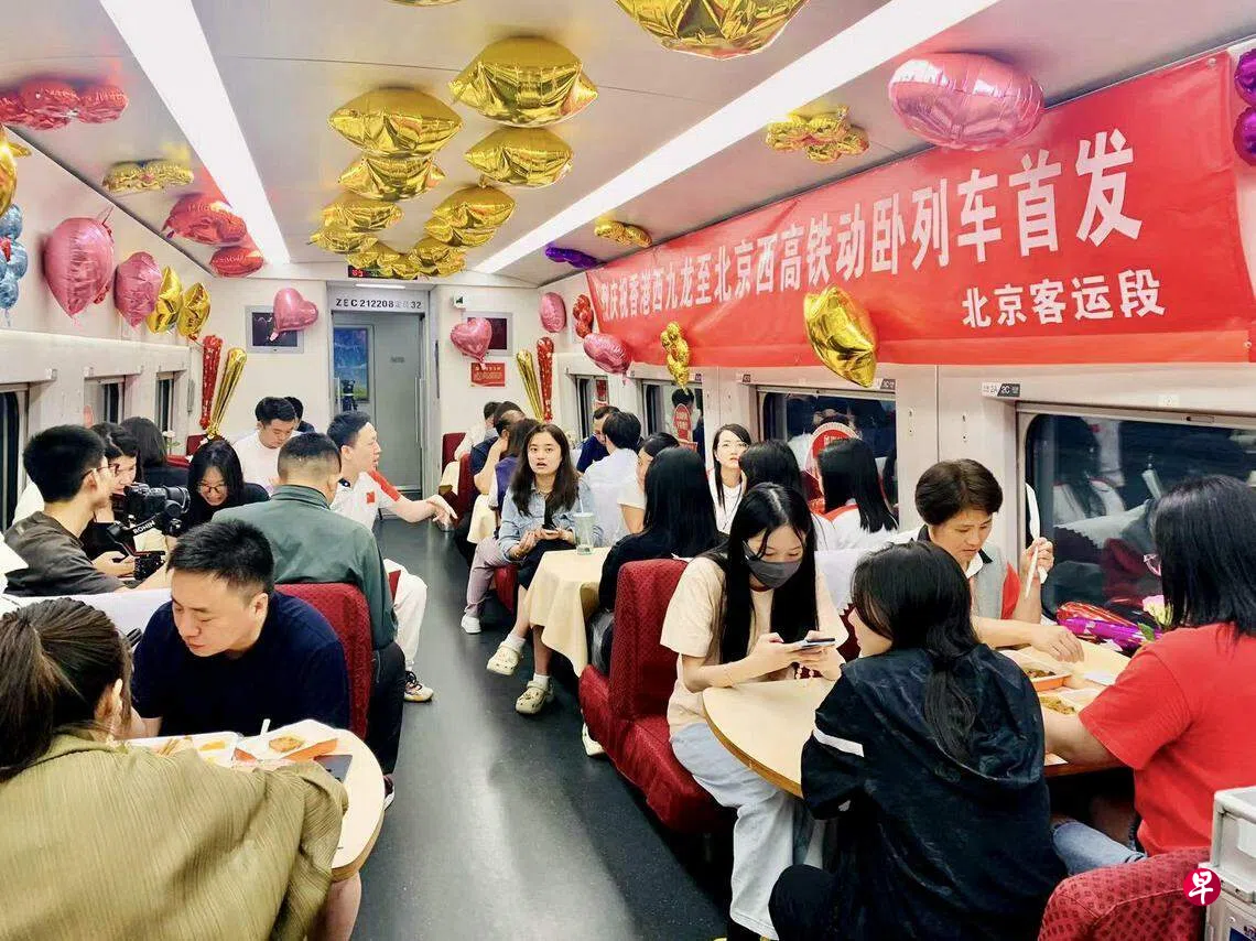 (香港/北京综合讯)往来于北京与香港、上海与香港的高铁动卧列车,自星期六(6月15日)正式运行,京港、沪港之间实现夕发朝至,使中国大陆与香港人员往来更加便利。