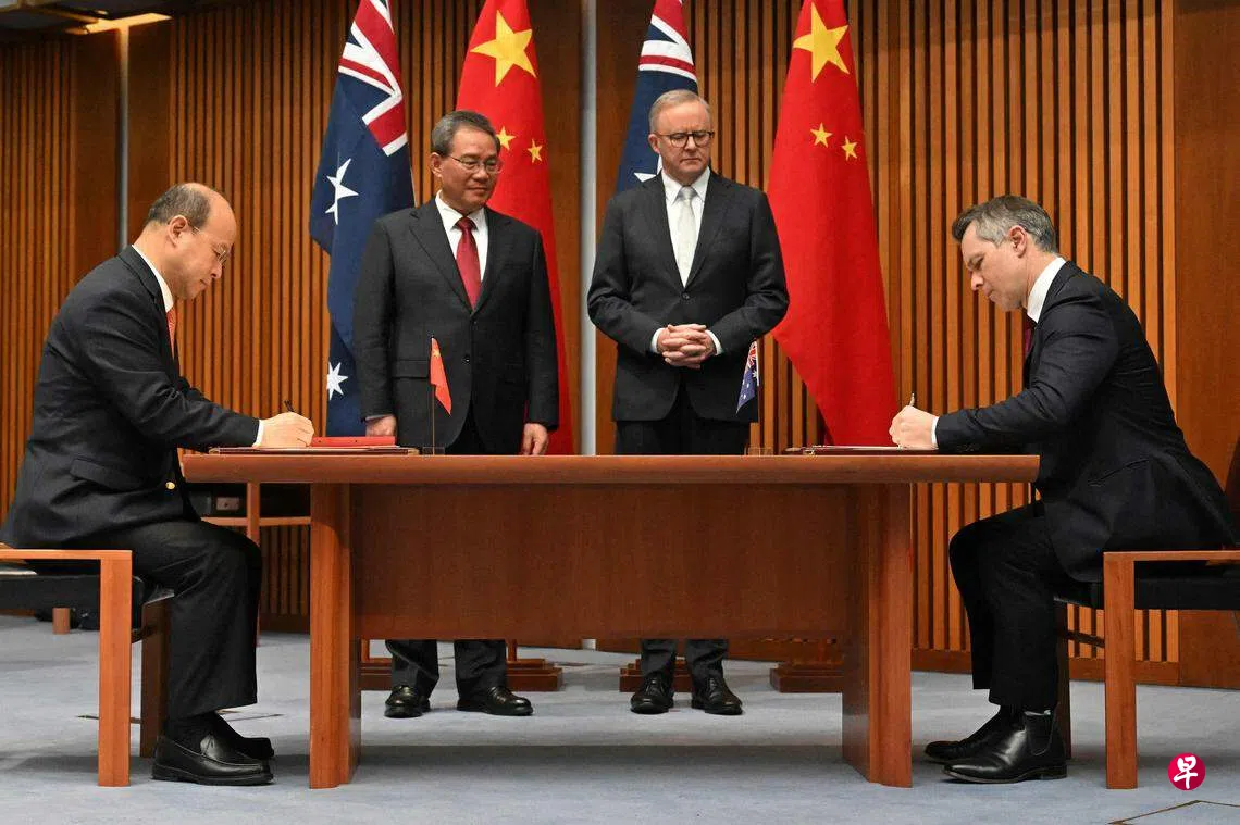 正在澳洲访问的李强,星期一(6月17日)在堪培拉议会大厦与阿尔巴尼斯举行会谈。双方官员也在两人见证下,签署了五项合作文件,涵盖战略经济对话、自贸协定实施、应对气候变化、教育、文化等领域。