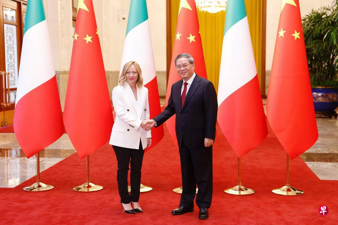 (北京综合讯)中国国务院总理李强星期天(7月28日)在北京与意大利总理梅洛尼举行会谈,表示支持中国企业赴意大利开展合作,希望意大利为中企提供公平、安全、非歧视的营商环境。梅洛尼则宣布签署三年行动计划,以重启与中国的合作。