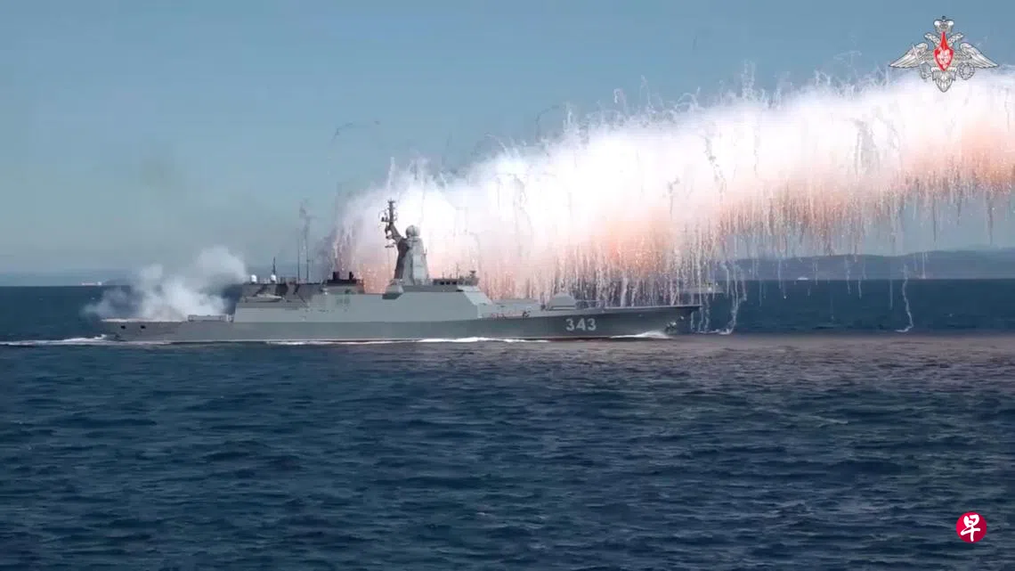 俄罗斯国防部说:“在执行演习任务的过程中,舰艇艇员将进行炮击,并使用防空和反潜武器进行一系列实战演习。”