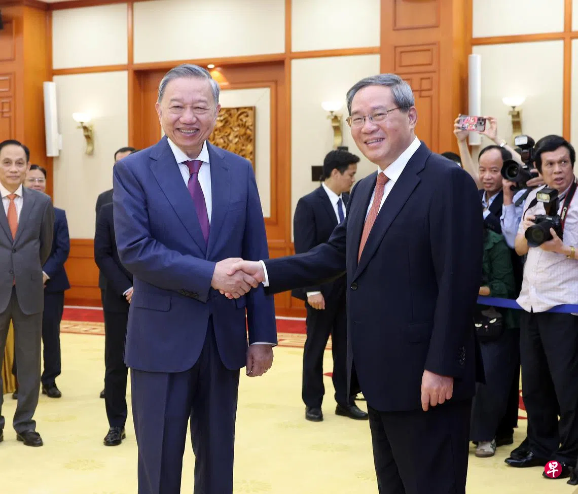越南国家主席苏林、总理范明政在周末会见正式访越的中国总理李强。据越南官媒报道,苏林与李强就维护南中国海和平稳定的重要性达成共识;范明政也呼吁不要让南中国海问题影响双方政治互信。