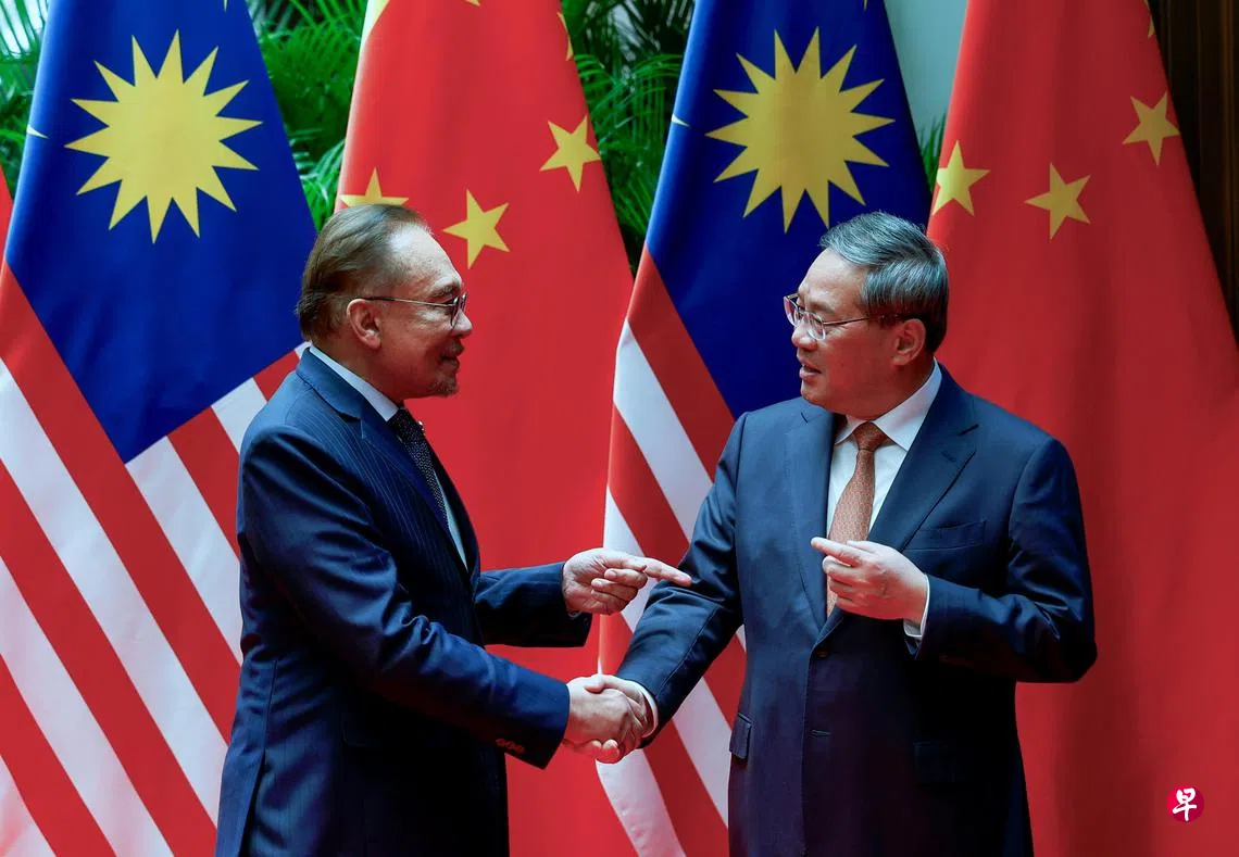 马来西亚首相安华星期二(11月5日)在上海与中国总理李强举行会谈时表示,期待马来西亚担任亚细安主席国时,双方共同努力,加强“亚细安+中国”机制。李强则形容,当前中马关系进入新的历史发展阶段,正朝共建命运共同体目标前行。