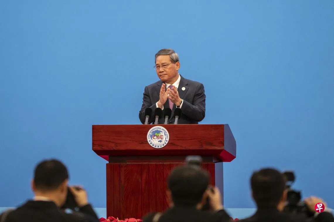 李强星期二(11月5日)出席第七届进博会开幕式时说,在扩大开放方面,中国一直说到做到,政府正在将中共二十届三中全会扩大开放的改革决策部署,转化为“任务清单、工作清单、责任清单”,逐条逐项推动落实,特别是进一步扩大制度性开放,积极对接国际经贸规则。