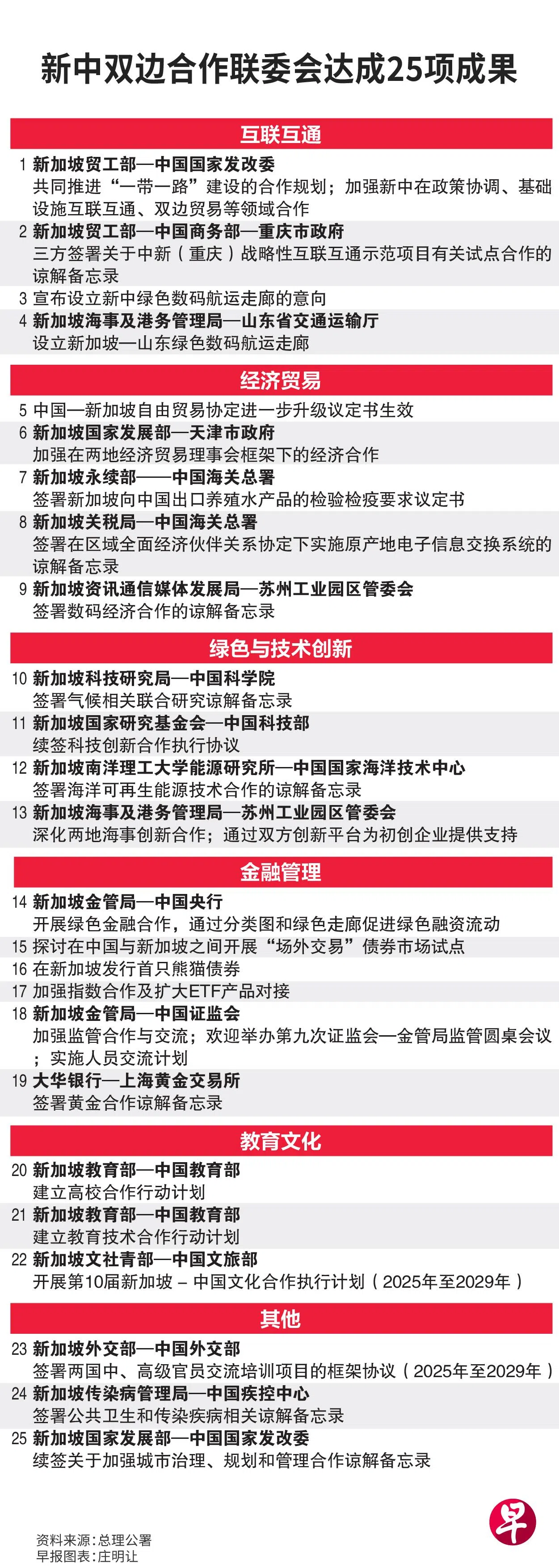 迈入第20届的新中双边合作联合委员会会议,今年见证新加坡与中国达成25项合作成果,涵盖贸易、金融、教育和互联互通等领域,展现了双边关系的实质性与多面性。