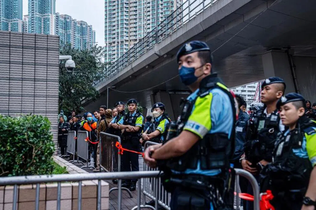 在法庭外,约有100人一早就在倾盆大雨中撑伞排队,争取进入法庭旁听。法院周围部署了数百名警察维持秩序。