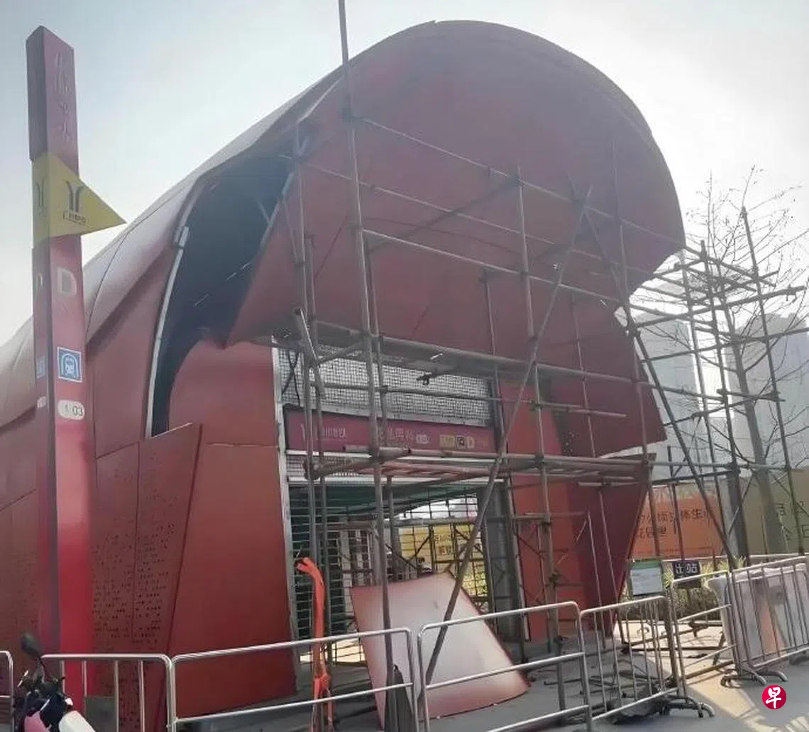 (广州综合讯)中国广州一个新装修的地铁站出入口,外形被市民吐槽像棺材,据报引起争议部分的建筑已进行拆除工作。