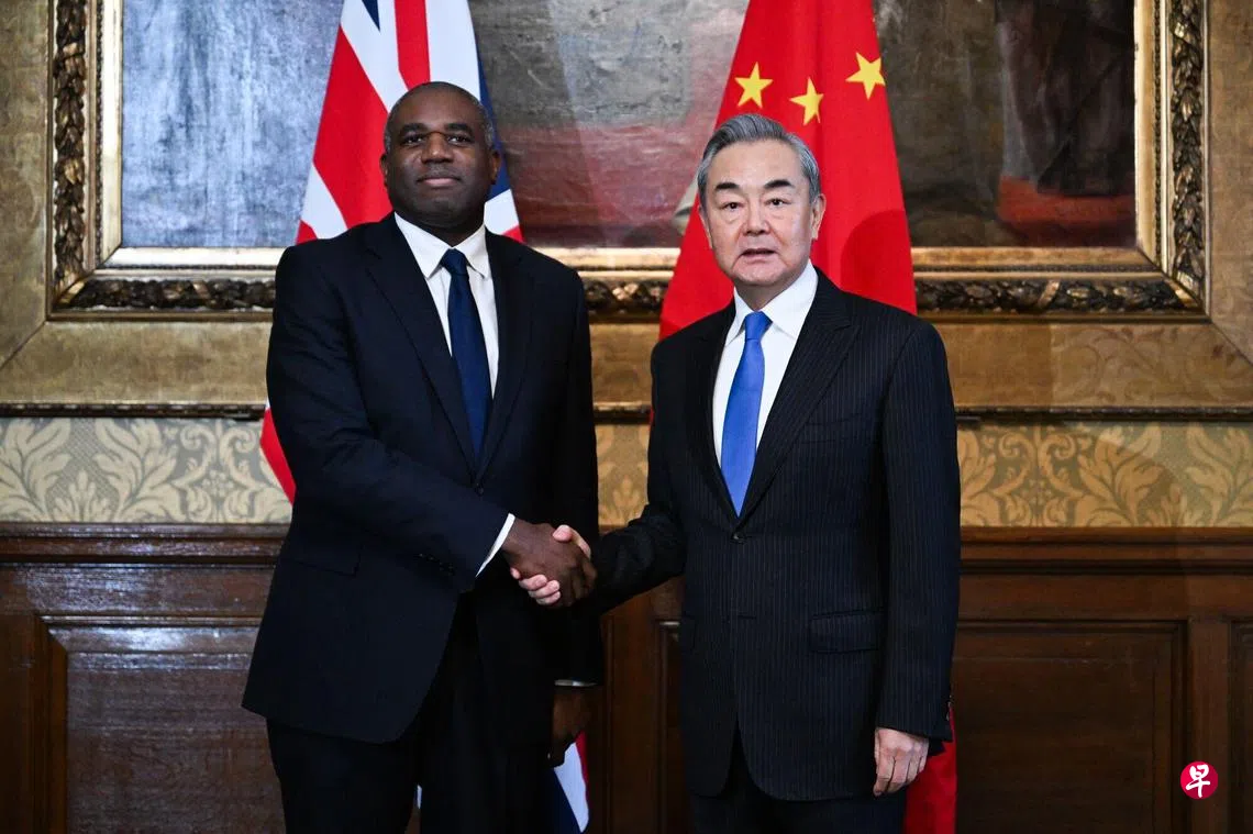 新华社报道,王毅星期四与斯塔默会面时就说,当今世界更加动荡,百年变局加速演进,中英同为联合国安理会常任理事国,双方要加强战略沟通、增进理解互信,展现大国担当,在应对气变、人工智能、绿色发展等领域加强合作,为世界提供更多确定性和稳定性。