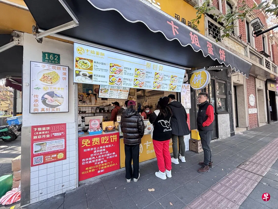 这是一家卖鸡蛋煎饼的小店,也是上海近10家提供免费餐的小店之一。