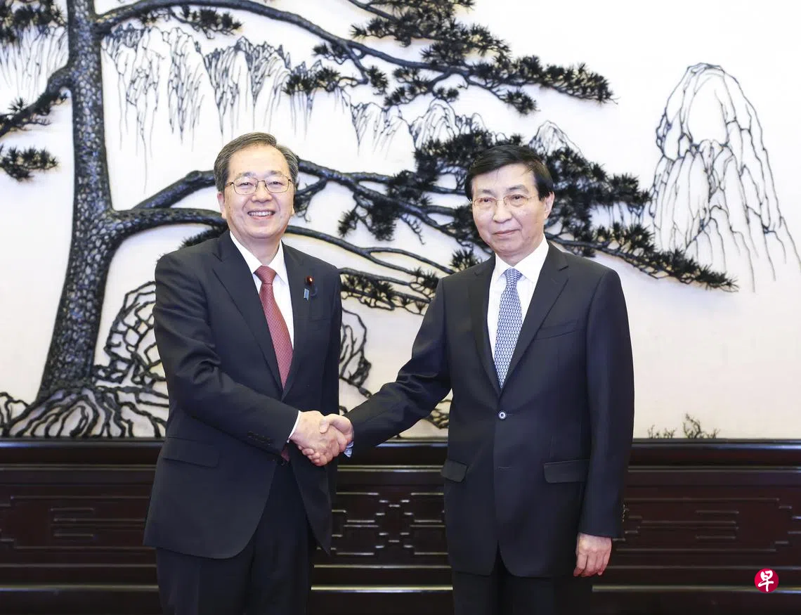 日本执政联盟领袖之一的公明党党魁齐藤铁夫,星期三(23日)在北京与中国全国政协主席王沪宁举行会谈,王沪宁呼吁两国携手因应挑战;齐藤则呼吁中美在报复性关税问题上保持冷静,并转交了日本首相石破茂致中国国家主席习近平的亲笔信。