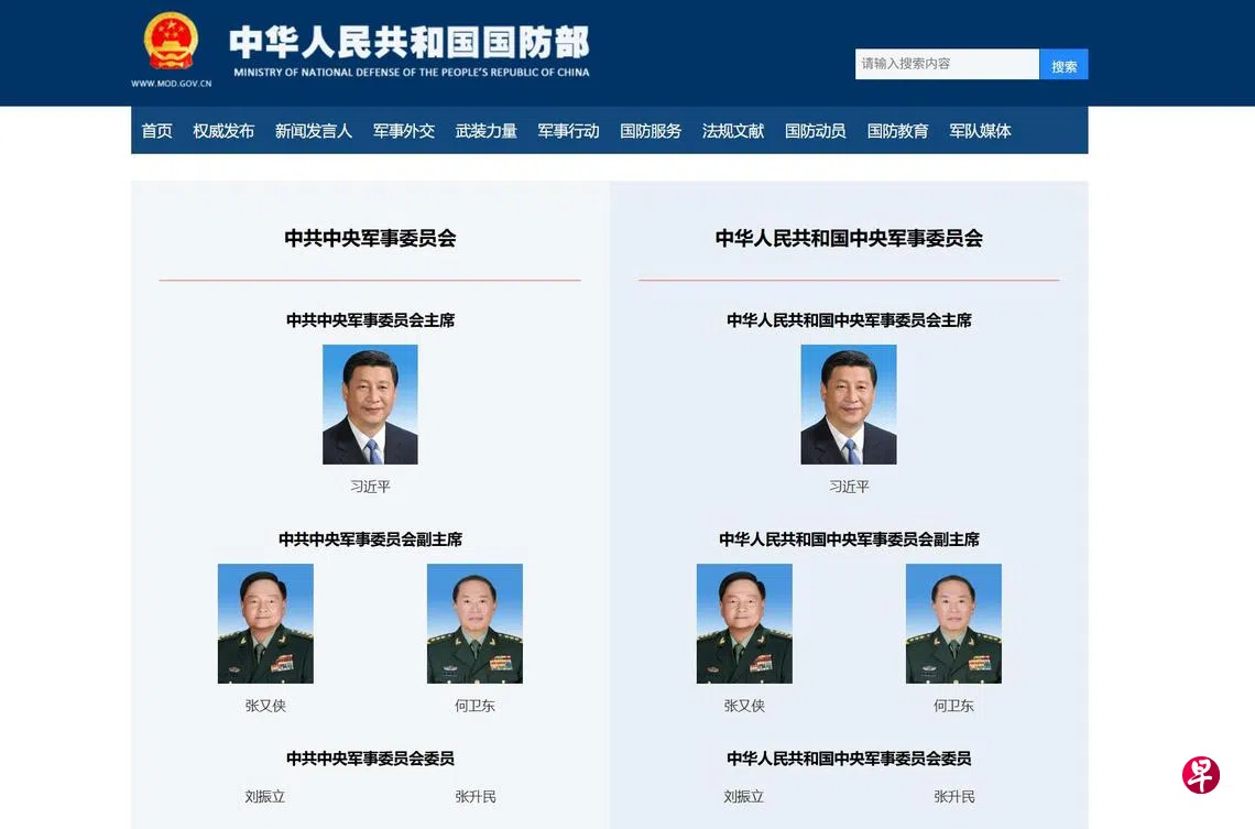在星期四(5月29日)下午,中国国防部官网高层栏目“中央军委委员”一栏,仍有苗华的名字。但目前这一栏目内,苗华的资料已被删除,意味着苗华不再是中央军事委员会委员。