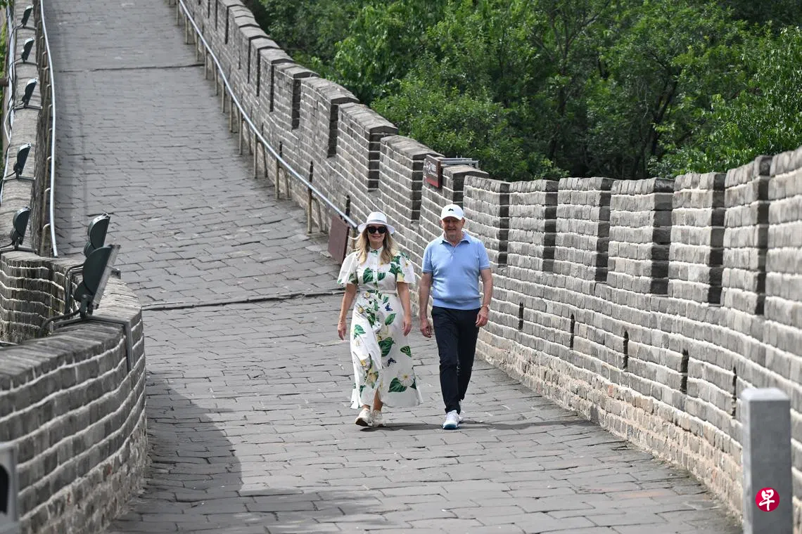 阿尔巴尼斯星期三(7月16日)在随行记者陪同下登上长城,并在这个公关活动中就多个敏感问题回答记者提问。据澳大利亚广播公司(ABC)报道,他也回顾了惠特拉姆促成澳中建交的历史。惠特拉姆是首位登上长城的澳洲工党总理。