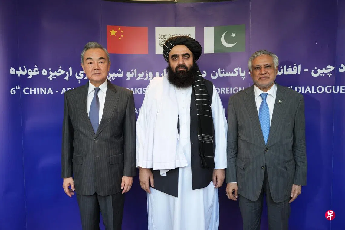 据中国外交部官网新闻稿,第六次中国—阿富汗—巴基斯坦三方外长对话星期三(8月20日)在阿富汗喀布尔举行,王毅、阿富汗外长穆塔基、巴基斯坦副总理兼外长达尔出席。