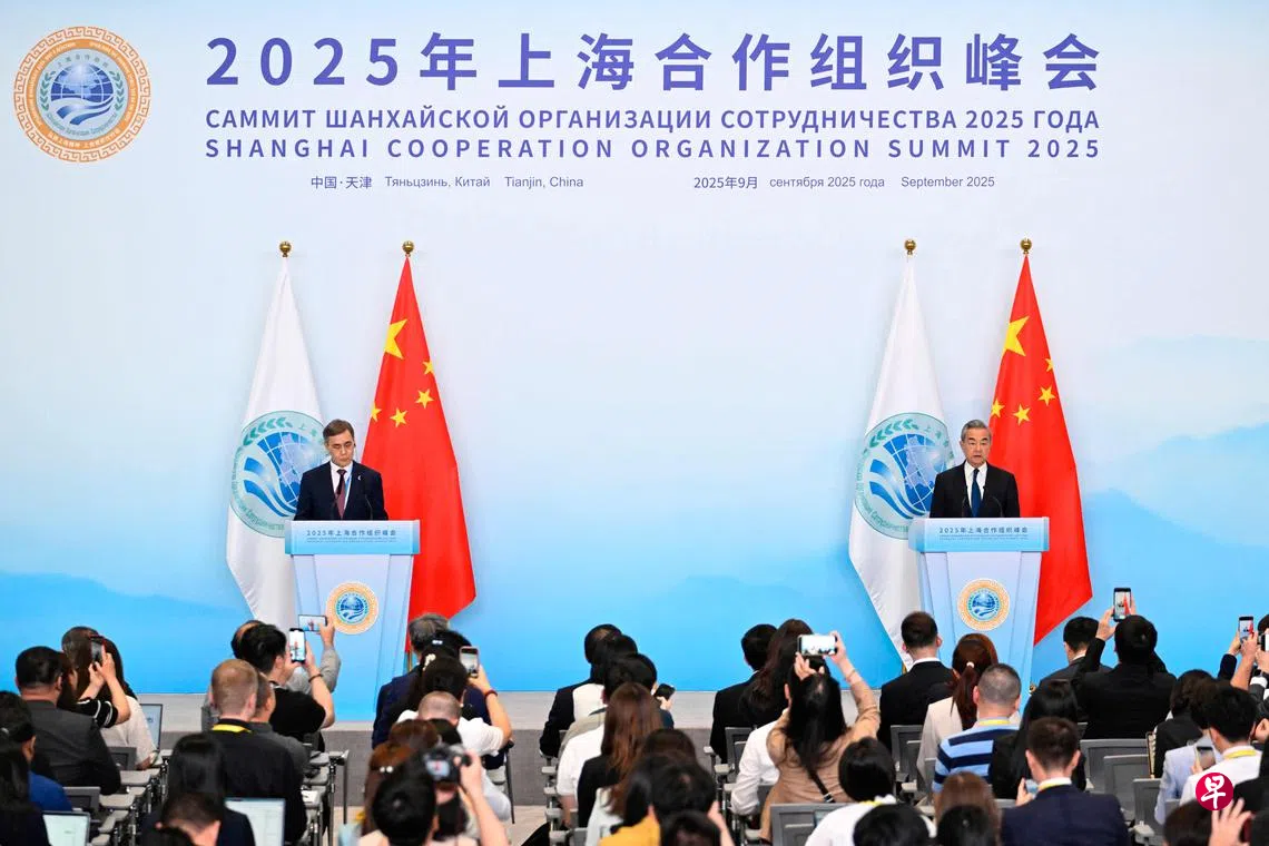 中国外交部长王毅星期一(9月1日)在上合组织天津峰会结束后,与上合组织秘书长叶尔梅克巴耶夫共同会见中外记者,并向媒体说明峰会取得的八大成果,其中一项是成员国作出了成立上合组织开发银行的政治决定。