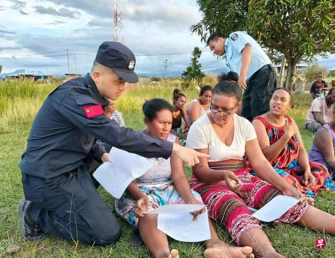 中国和所罗门群岛是安全合作伙伴。所罗门警方发布的社媒照片显示,中国警察今年已走访当地数个村庄推广枫桥经验,并通过游戏方式让儿童熟悉监控无人机。