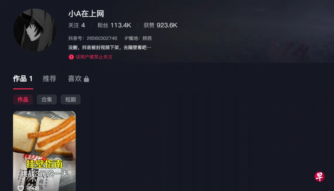 与过去精致、小资的躺平生活不同,本轮网吧躺平博主展示的是粗糙、甚至落魄的躺平生活,如住在月租600元(人民币,下同,108新元)的单间,用3元解决一日三餐等。“夏老二”在账号简介中,将这种生活形容为“不拘泥于世俗的另一种人生”。