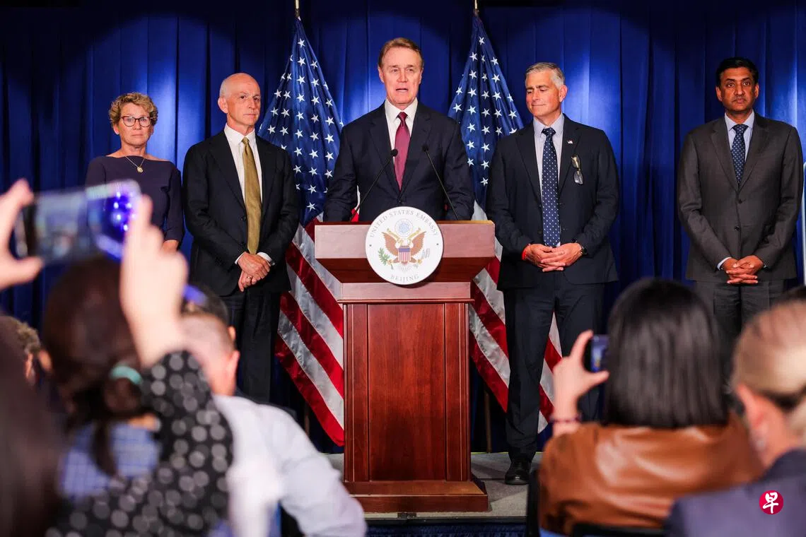 综合法新社和彭博社报道,美国众议员代表团星期二与美国驻中国大使庞德伟,在北京的美国驻大使馆举行记者会。