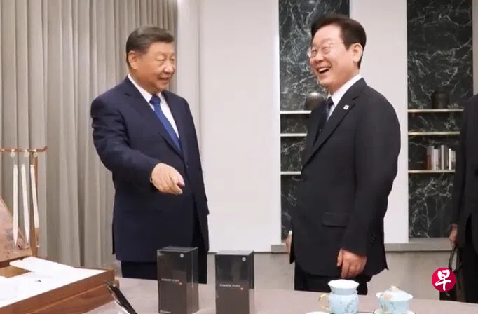 这轻松的一幕发生在星期六(11月1日),习近平和李在明当时在韩国庆州举行的亚太经合组织(APEC)峰会期间举行会晤,并互赠礼物。
