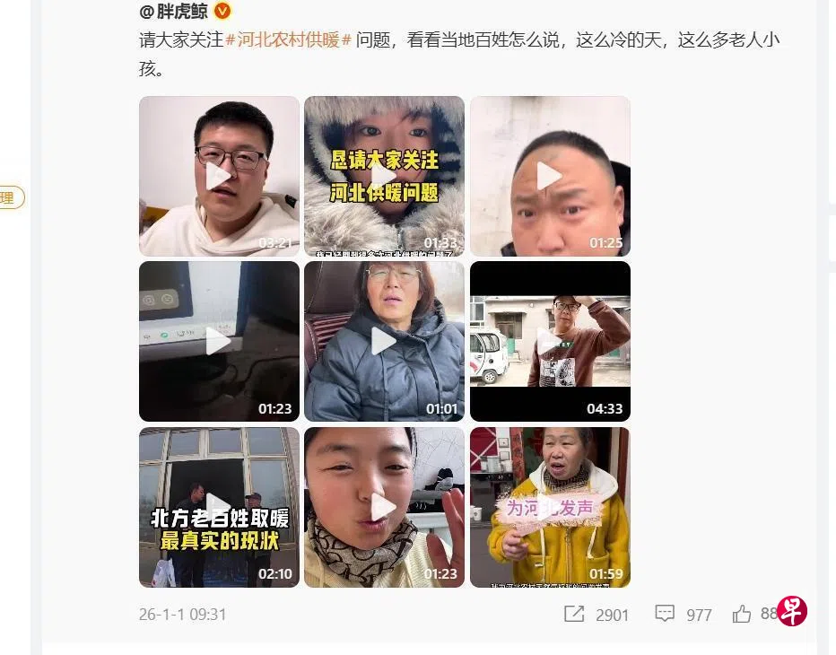 中国官媒《农民日报》星期一(5日)说,河北农村家庭过冬取暖费要几千元(人民币,下同,1000元约合184新元),而农民年收入也就一两万元。“河北农村取暖问题不能再耽搁了......哪怕还是烧煤也不能冻着人。”