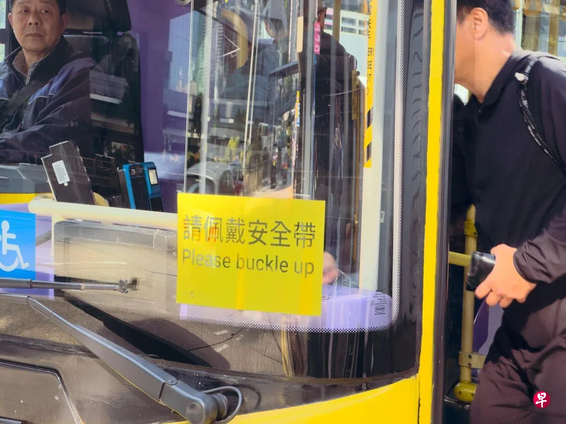 综合《明报》和《星岛日报》报道,新修订的《道路交通规例》星期天(1月25日)实施,乘搭公共巴士、私家小巴、货车等商用车时,如座位已装设安全带,司机或乘客均必须佩戴,否则最高罚款5000元(港元,约817新元)及监禁三个月。