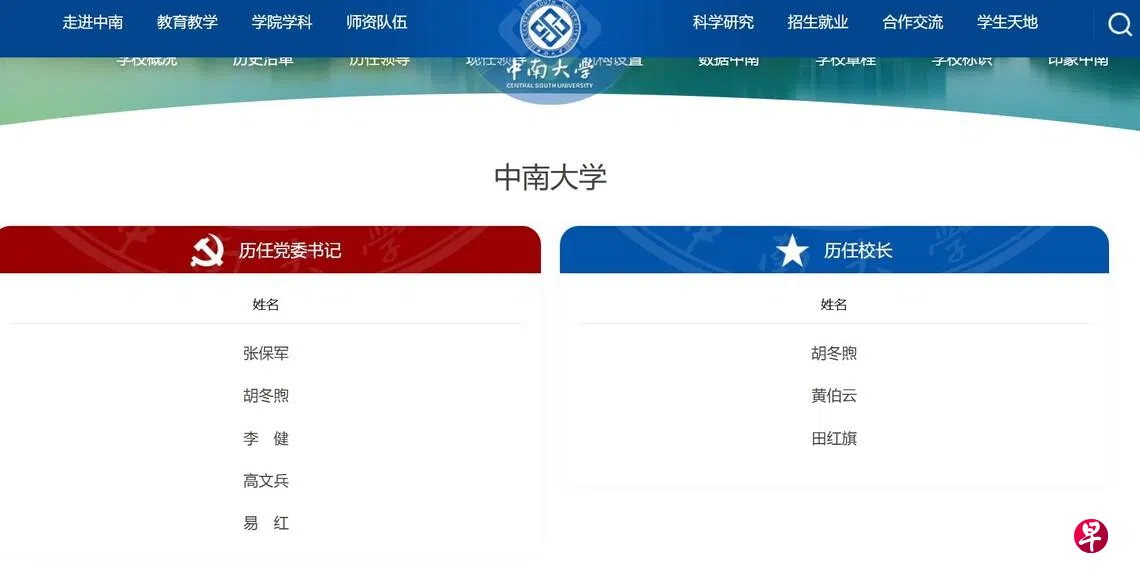 去年10月17日,已卸任八年多的中南大学原校长张尧学官宣被查。近期有中南大学校友发现,张尧学的姓名已从官网“历任校长”介绍栏目中移除。网民质疑,完全移除没有必要,即便犯过错,张尧学作为校长的历史还是要尊重的。