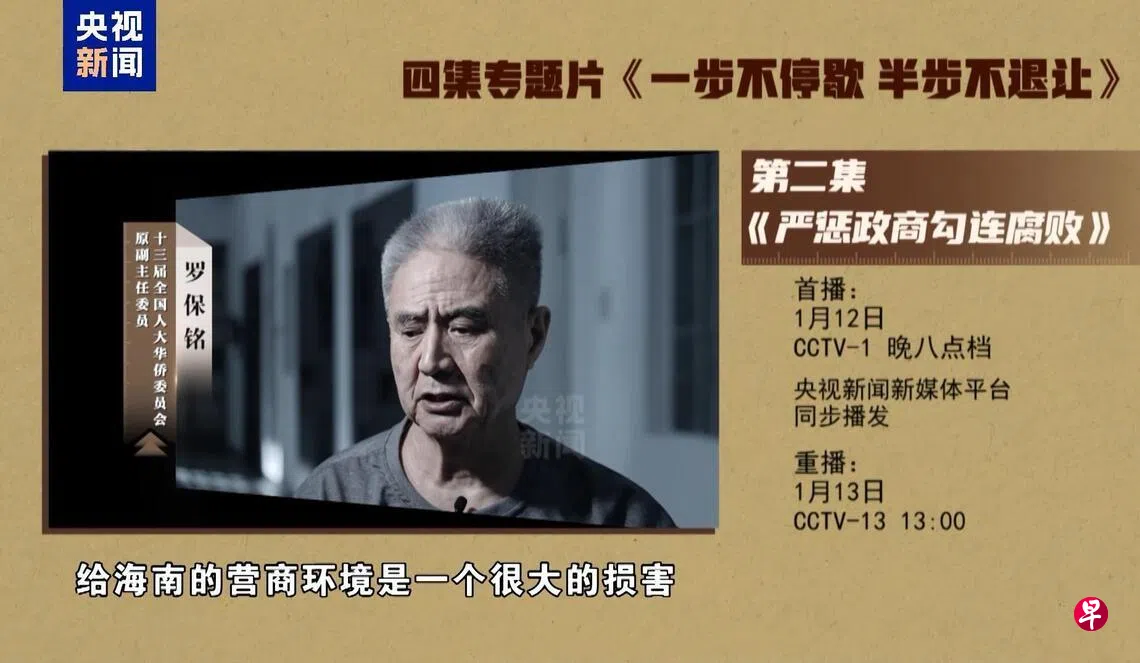 本月早些时候,由中共中央纪委国家监委宣传部与官媒央视联合摄制的电视专题片《一步不停歇 半步不退让》,1月11日至14日在央视播出,时逢二十届中央纪委五次全会1月12日至14日召开。全片选取12个案例,重点聚焦官商勾结的腐败行为,展示纪检监察机关过去一年的反腐工作。
