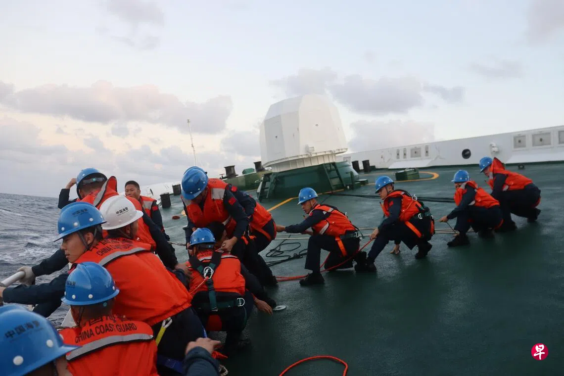 中国海警局通报称,1月以来,中国海警持续加强黄岩岛海域及周边区域执法巡查,处置非法侵权船只,坚决维护国家领土主权和海洋权益。当局也紧急救援菲律宾籍落水船员,保障海上安全秩序。
