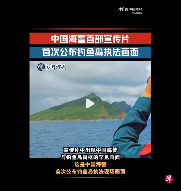 中国官媒央视旗下新媒体“玉渊谭天”称,中国海警发布的首部形象宣传片,当中首次公布钓鱼岛(日本称尖阁诸岛)执法现场画面。