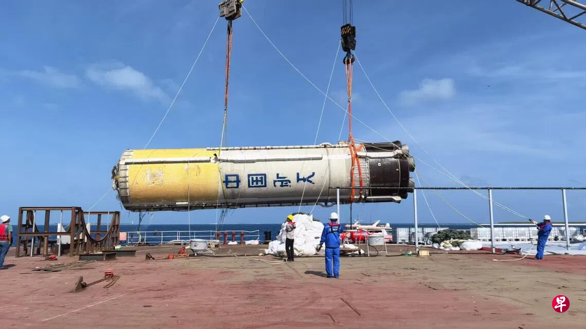中国载人航天工程办公室宣布,中国完成首次火箭一级箭体海上打捞回收任务。