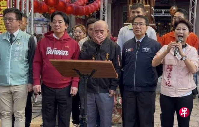 台湾总统赖清德大年初二到台南发福袋,在听立委致辞时,庙宇主委身体不适呕吐,呕吐物也溅到赖清德左边手臂和衣物。