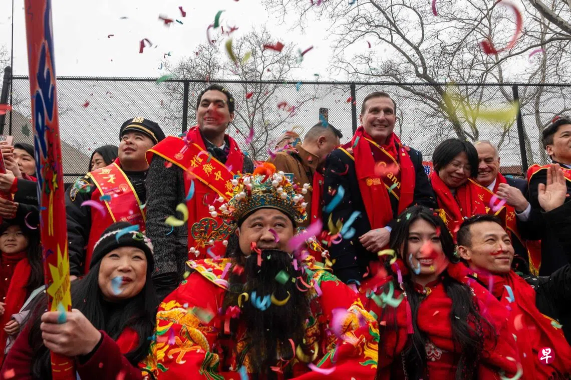 2026年2月17日,人们在纽约市唐人街参加爆竹庆典与文化节活动,庆祝农历新年。 (法新社)