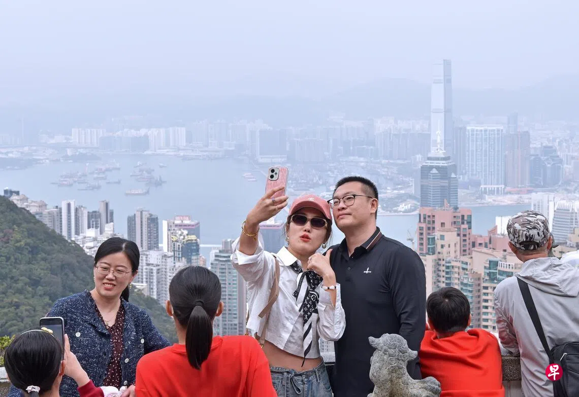 香港各景点排队人潮在星期天仍然不减。香港旅游发展局网页显示,当天下午由中环至山顶的山顶缆车须排队30至60分钟,中环摩天轮须排队超过60分钟,昂坪360的昂坪至东涌方向也须排队超过60分钟。
