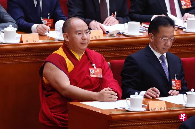 香港媒体报道,中国全国政协会议开幕会星期三(3月4日)结束后,中国国家主席习近平在离场前向第十一世班禅额尔德尼·确吉杰布挥手打招呼。