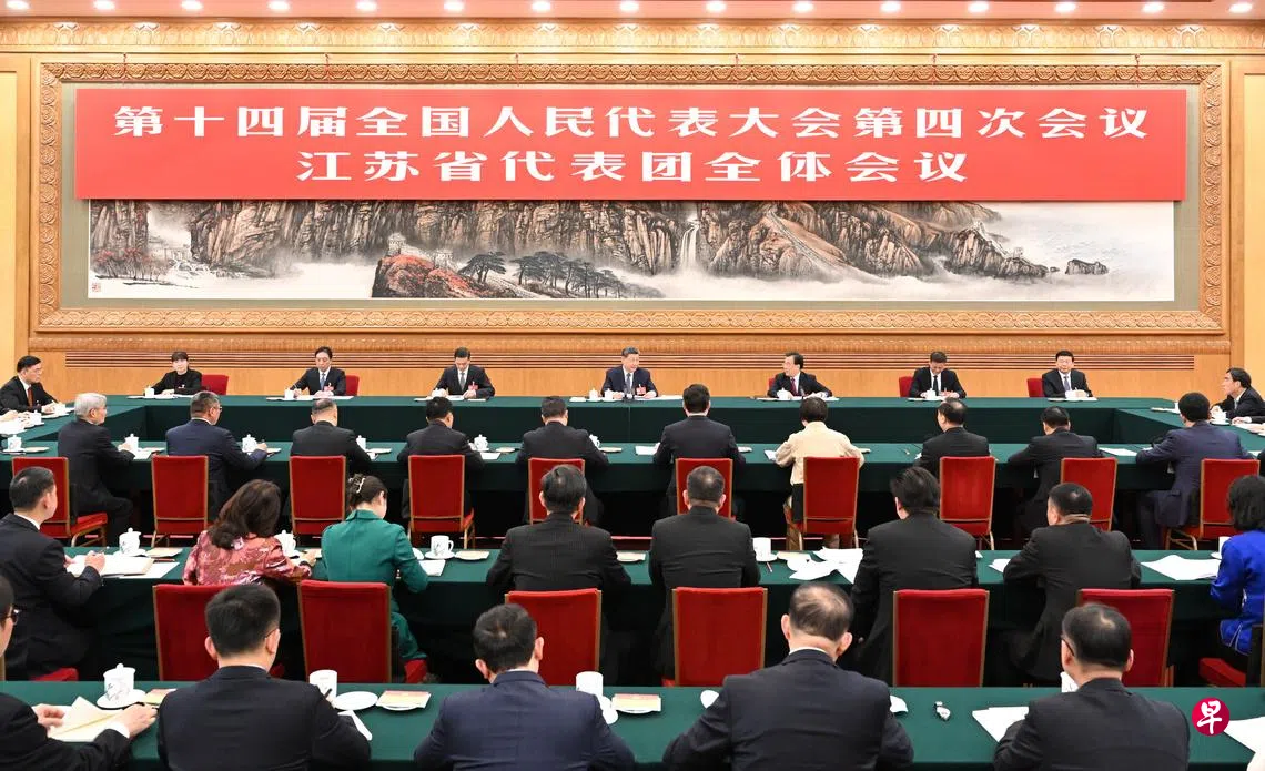 中国国家主席习近平星期四(3月5日)下午参加他所在的全国人大会议江苏代表团审议。