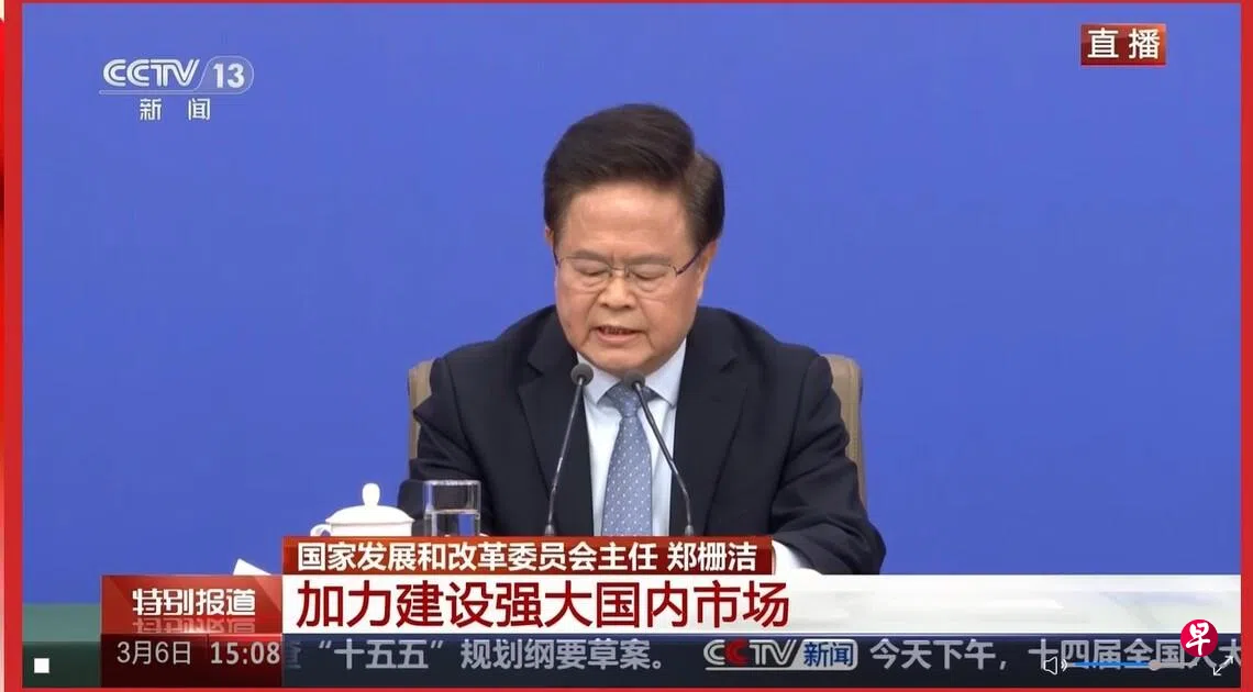中国国家发展和改革委员会主任郑栅洁表示,预计今年GDP增量超6万亿人民币(1.1万亿新元)。
