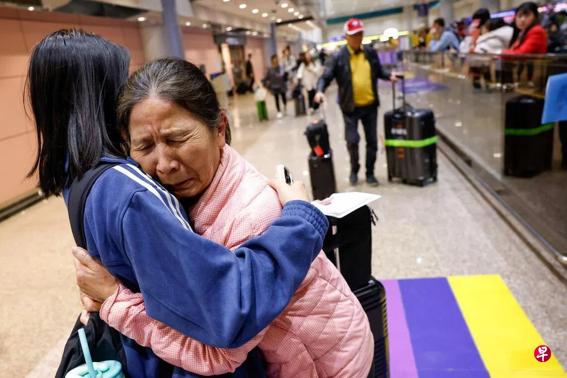 美伊开战,中东紧张情势持续升温,受困当地的台湾民众近日陆续返台,在机场和家人激动相拥。台湾外交部和交通部官员星期四(3月5日)前往接机,手持“平安归国”的标语,在网络引发热议。