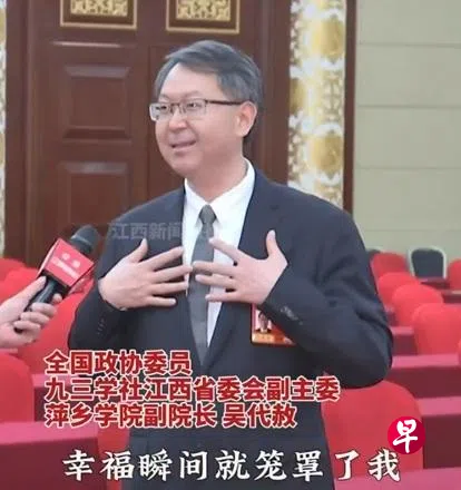 据萍乡学院官网上星期六(3月7日)消息,也是萍乡学院副院长的吴代赦发布了题为《前排的幸福眩晕——近距离感受习近平总书记的风范》的文章。文章首先写道,上星期五(3月6日)下午,习近平看望参加全国政协十四届四次会议的农工党、九三学社、医药卫生界、社会福利和社会保障界委员,并参加联组会,听取意见和建议。吴代赦作为九三学社界别委员现场聆听了习近平的讲话。