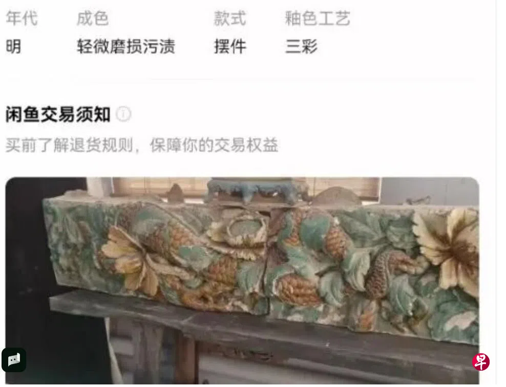 此前疑似被盗的国宝琉璃出现在中国二手交易平台闲鱼上,标价36666元(人民币,6814新元)。