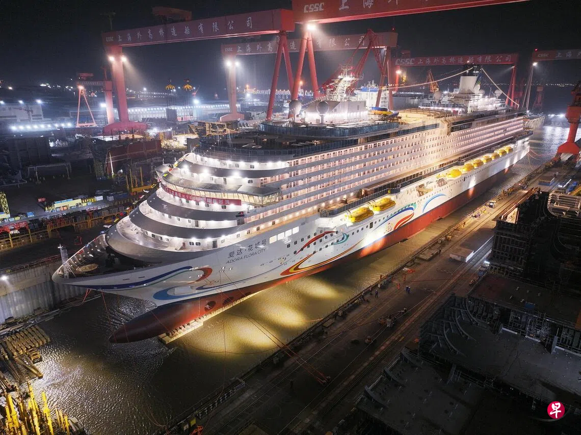 中国央视新闻客户端引述中船集团报道,中国第二艘国产大型邮轮“爱达·花城号”星期六(3月14日)完成了坞内注水,顺利起浮。