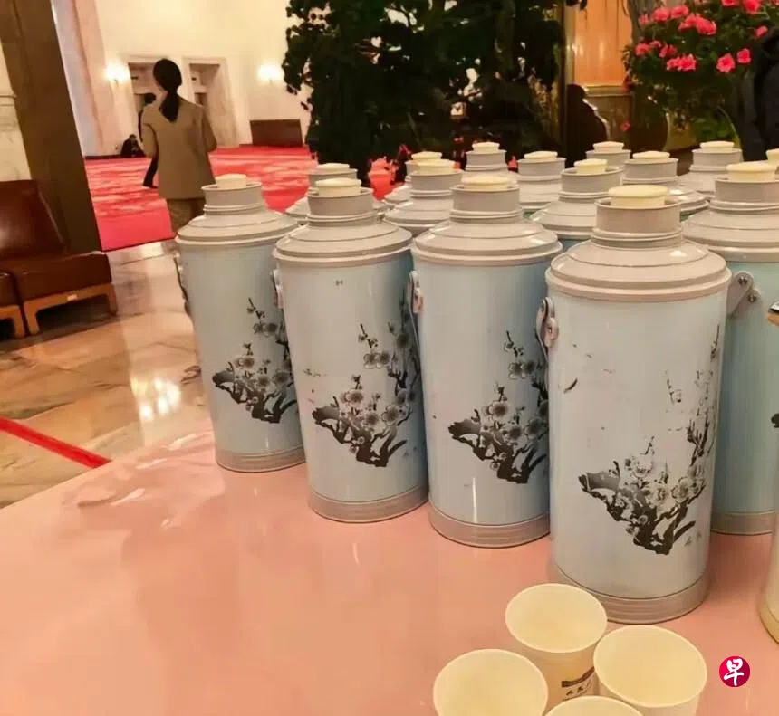 这篇以记者手记形式发出的报道称,这一产品已经停产,类似款式价格约在30元(人民币,5.6新元)至50元之间。热水瓶放置于人民大会堂一楼公共供水区,工作人员明确表示“大会要求节俭,能用的器具绝不更换”,与政府工作报告中“严控一般性支出”的政策形成呼应。