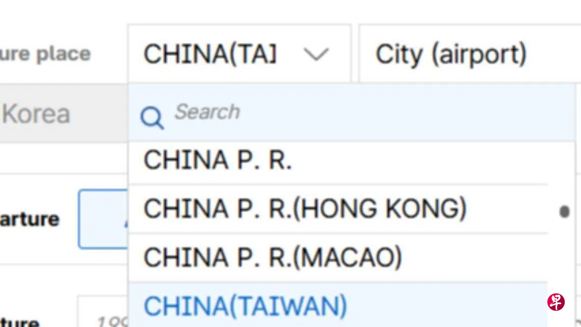 据台湾外交部官网消息,韩国政府电子入境卡系统的“出发地”及“下一目的地”栏位,仍以“中国(台湾)”称呼台湾,外交部及台湾驻韩国代表处已持续向韩方提出严正交涉,要求尽速更正。