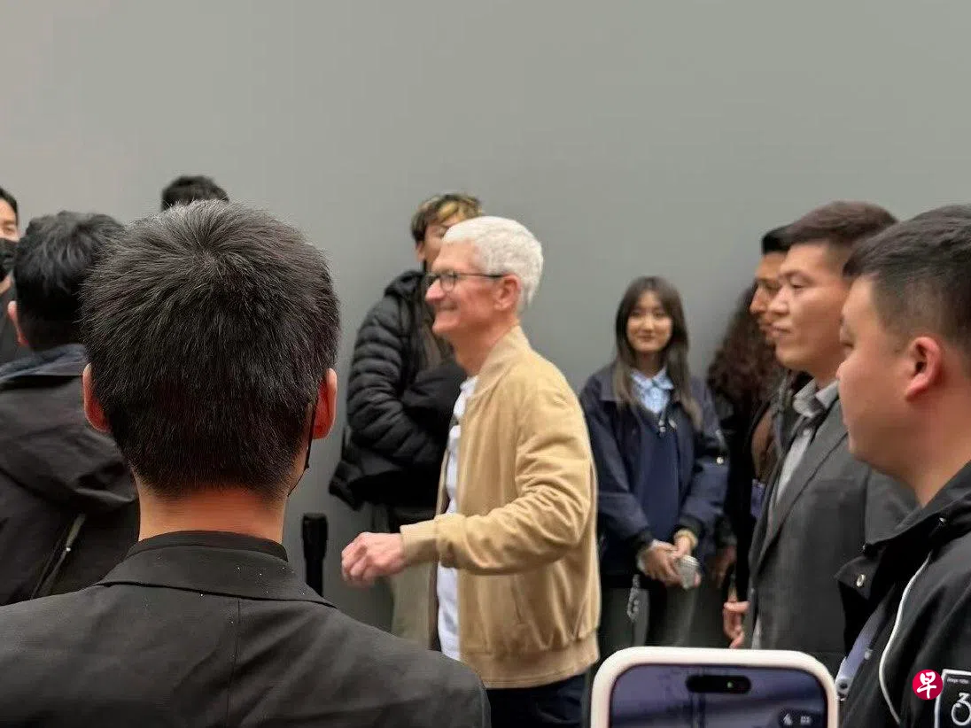 美国科技巨头苹果首席执行官库克星期三(3月18日)现身成都太古里苹果零售店,据报是为出席苹果公司50周年庆祝活动。