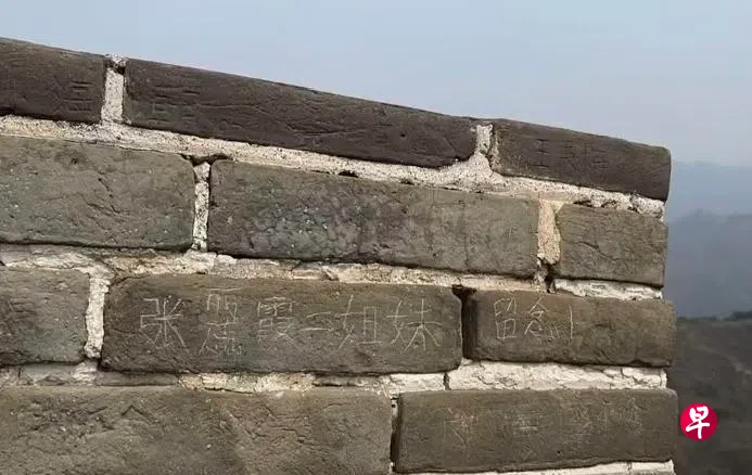 有中国游客在北京八达岭长城砖墙刻“姐妹留念”字样,被行政拘留并处以罚款。