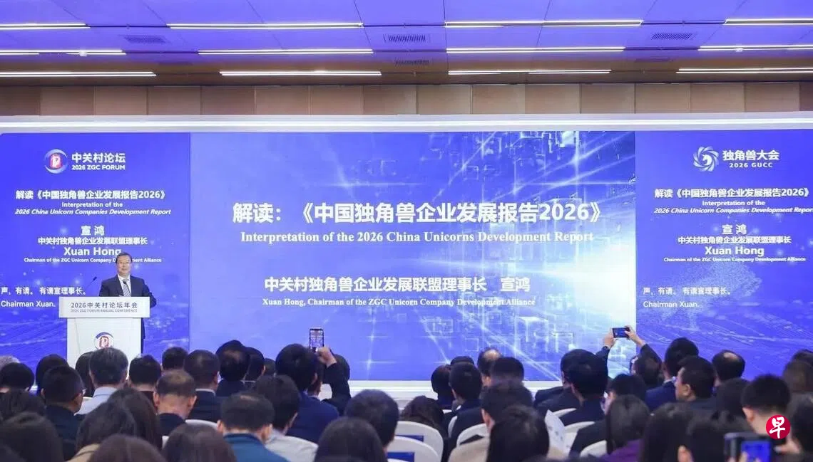 据中新社报道,作为2026中关村论坛年会平行论坛之一,全球独角兽企业大会星期天(3月29日)在北京举办。会上发布的《中国独角兽企业发展报告(2026年)》指出,中国独角兽企业总估值合计约1万6095亿美元(2万零736亿新元),平均每家企业估值约为38.69亿美元。