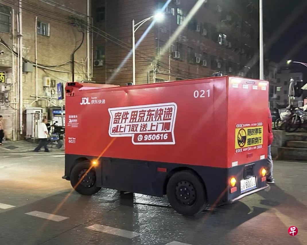 贴文说,晚上10时,京东物流“独狼”智能配送车满载生鲜、米面粮油等生活快消品,沿着新获批的两条跨区夜间线路驶向龙岗片区。