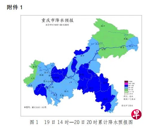 据新华社报道,重庆市防汛抗旱指挥部指出,预计星期天午后到星期一(20日)白天,重庆市将出现今年首场大范围暴雨天气过程,16个区县有较高以上强降雨灾害风险,23个区县部分中小河流有涨水风险。